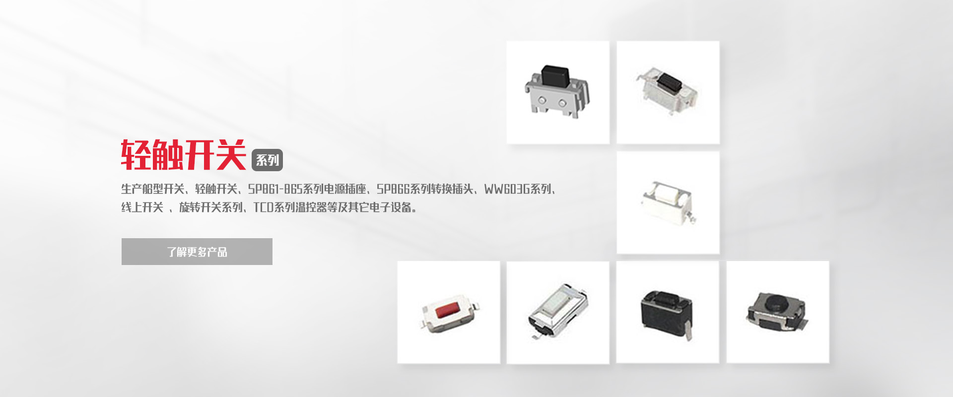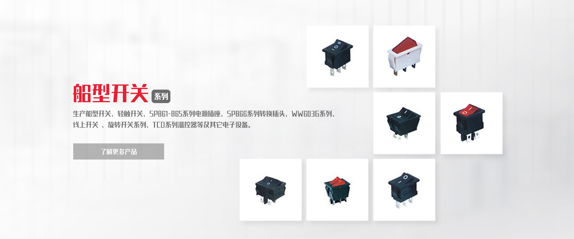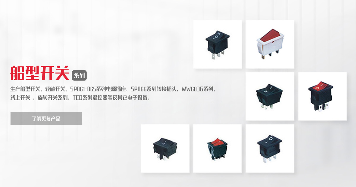 致力于船型開關(guān)、負(fù)載開關(guān)、輕觸開關(guān)、微動開關(guān)等產(chǎn)品的研發(fā)、制造、銷售。